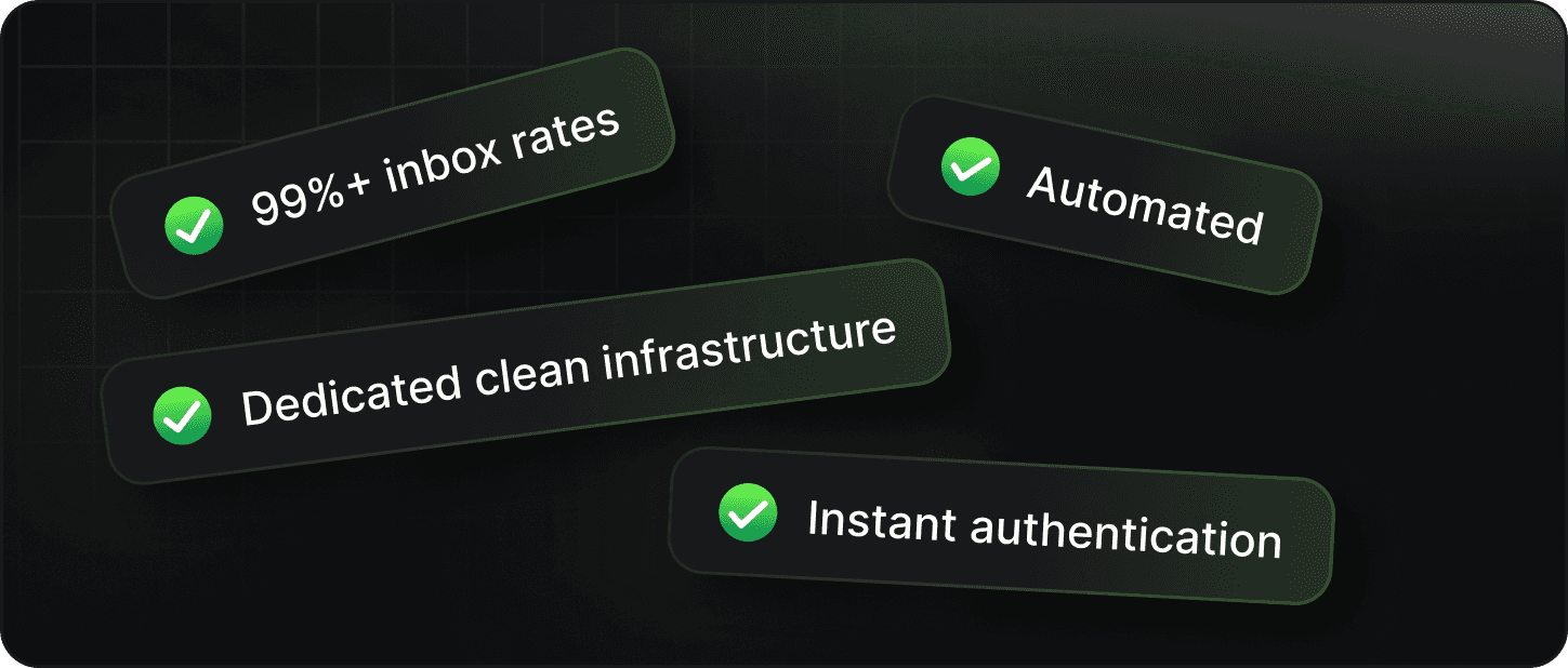 Under 5 minutes. Connect your domain → we auto-configure everything (DNS records, dedicated IP, warmup, tracking domains). No manual DNS fiddling. You’re sending with perfect authentication almost instantly.